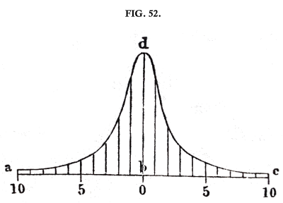 But if the tension in direction of its length is infinitesimally small in comparison with the tension in direction of the breadth, then the radial fibres of the basilar membrane may be approximatively regarded as forming a system of stretched strings, and the membranous connection as only serving to give a fulcrum to the pressure of the fluid against these strings. In that case the laws of their motion would be the same as if every individual string moved independently of all the others, and obeyed, by itself, the influence of the periodically alternating pressure of the fluid of the labyrinth contained in the vestibule gallery. Consequently any exciting tone would set that part of the membrane into sympathetic vibration, for which the proper tone of one of its radial fibres that are stretched and loaded with the various appendages already described, corresponds most nearly with the exciting tone; and thence the vibrations will extend with rapidly diminishing strength on to the adjacent parts of the membrane. Fig. 52, on p. 144, might be taken to represent, on an exaggerated scale of height, a longitudinal section of that part of the basilar membrane in which the proper tone of the radial fibres of the membrane are nearest to the exciting tone.